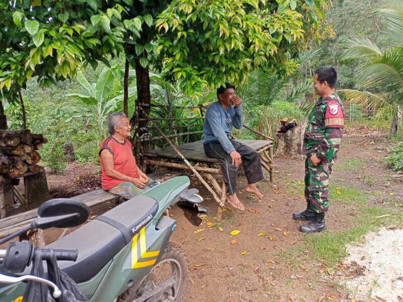 Kodim0416bute.co.id, Bungo Babinsa Koramil 416-02/Tanah Tumbuh, Sertu Rustam, melaksanakan kegiatan komunikasi sosial (Komsos) dengan beranjangsana ke rumah warga binaannya di Desa Talang Silungko, Kecamatan Bathin II Pelayang, Kabupaten Bungo, Sabtu (18/10/2025).