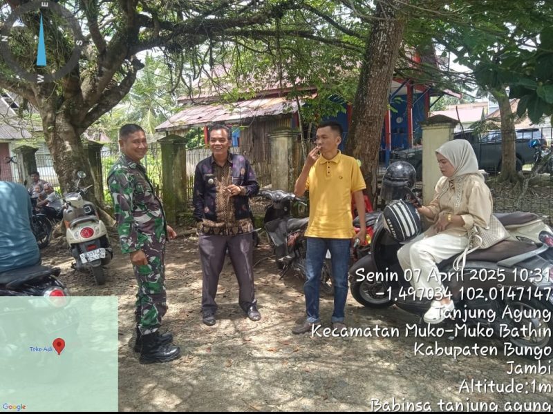Kodim0416bute.co.id, Bungo – Dalam upaya mempererat hubungan dengan masyarakat, Babinsa Koramil 416-01/Rantau Pandan, Serka Tohirin melaksanakan kegiatan Komunikasi Sosial (Komsos) di Desa Tanjung Agung, Kecamatan Muko-Muko Bathin VII, Kabupaten Bungo, Senin (07/04/2025).