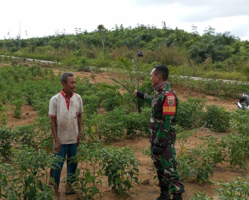 Dalam pelaksanaannya, Serda Aandra Ritonga turun langsung ke kebun warga untuk melihat kondisi tanaman cabai sekaligus memberikan motivasi agar petani terus merawat tanaman dengan baik.