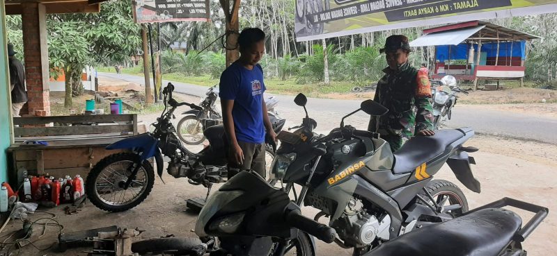 Kodim0416bute.co.id, Tebo – Babinsa Koramil 416-03/Sungai Bengkal Sertu Khairul Asri melaksanakan anjangsana/ komsos dengan Bapak Salamuddin salah satu pemilik bengkel motor yang berada Desa Teluk Rendah Ulu Kecamatan Tebo Ilir Kabupaten Tebo, Kamis (28/08/2025).