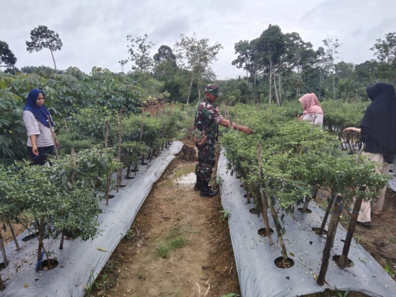 Kodim0416bute.co.id, Bungo – Babinsa Koramil 416-06/Muara Bungo Kodim 0416/Bute, Sertu Sudi Armadi, menyambangi salah satu warga binaannya, Eko, yang memanfaatkan lahan di sekitar rumahnya sebagai lahan pertanian.