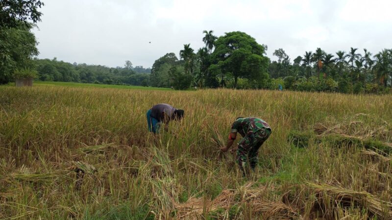 Kehadiran Babinsa di tengah sawah menjadi wujud nyata kepedulian TNI AD terhadap kesejahteraan petani serta dukungan terhadap ketahanan pangan di wilayah. Serda Nafoliontri bersama para petani tampak bahu-membahu memanen padi, menciptakan suasana kebersamaan dan semangat gotong royong.