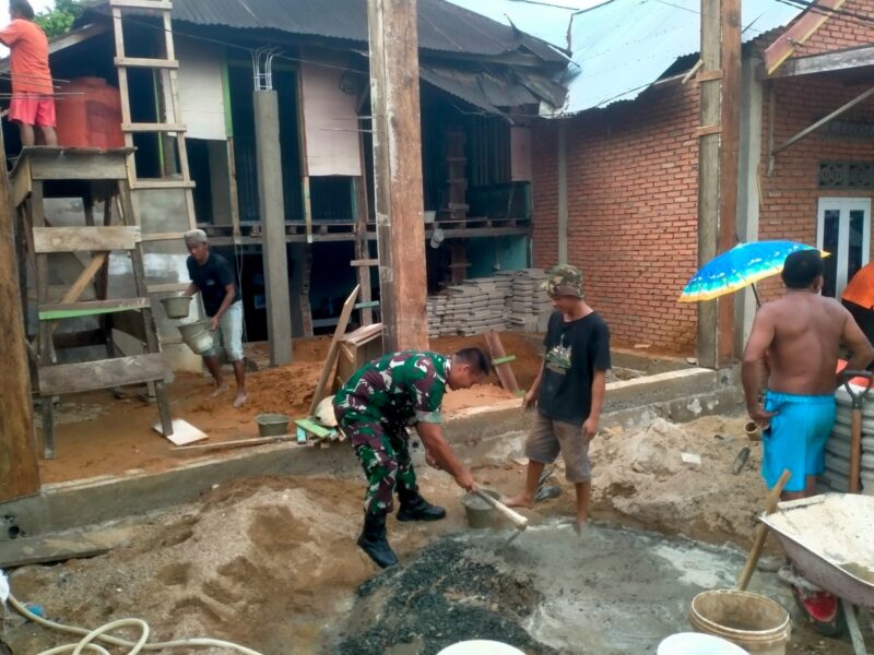 Dalam kesempatan tersebut, Sertu Bakri membantu mengangkat material dan menata kebutuhan pembangunan bersama warga setempat. Ia juga menyampaikan bahwa kebersamaan seperti ini menjadi sarana memperkuat komunikasi, sekaligus memastikan situasi wilayah tetap aman dan kondusif.