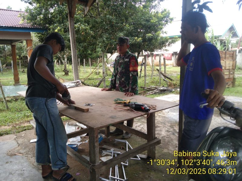 Kodim0416bute.co.id, Bungo – Babinsa Koramil 01/Rantau Pandan, Sertu Yuli Erwan, melaksanakan komunikasi sosial (Komsos) dengan Sukimin, salah satu pengrajin kayu di Desa Suka Jaya, Kecamatan Muko-Muko Bathin VII, Rabu (12/03/2025).