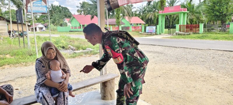 Kodim0416bute.co.id, Tebo – Dalam upaya menekan risiko stunting di wilayah binaannya, Babinsa Koramil 416-04/Pulau Temiang, Desa Aur Cino Kecamatan VII Koto Kabupaten Tebo, Kopka Dedi, melaksanakan kegiatan edukasi kesehatan kepada warga, Rabu (03/12/2025).