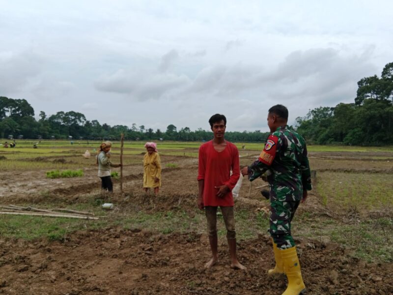 Mengawal Swasembada Pangan dari Desa, Babinsa Koramil 416-04/Pulau Temiang Dampingi Petani