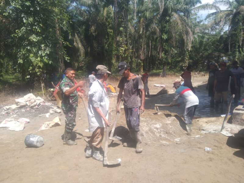 Dengan penuh semangat, Serka Sudi Armadi bergabung bersama warga mengangkat material, mengaduk semen, hingga meratakan coran. Kegiatan ini menjadi bukti nyata bahwa kehadiran Babinsa tidak hanya sebagai aparat kewilayahan, tetapi juga bagian dari masyarakat yang selalu siap membantu dan mendukung setiap kegiatan positif di desa binaannya.
