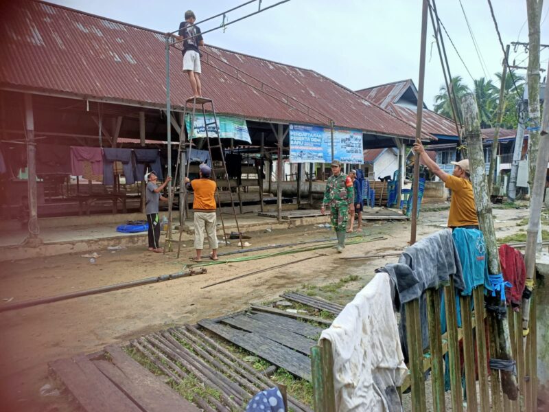Kodim0416bute.co.id, Bungo – Babinsa Koramil 416-01/Rantau Pandan, Serka Andi Iskandar, membantu warga mendirikan tenda untuk keperluan acara syukuran bersama di Desa Rantau Pandan, Kecamatan Rantau Pandan, Kabupaten Bungo, Senin (09/02/2026). Kegiatan ini dilakukan sebagai bentuk kepedulian dan kebersamaan Babinsa dengan warga di wilayah binaan.